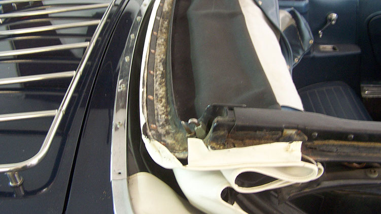 beschädigtes Verdeck vor der Restaurierung
