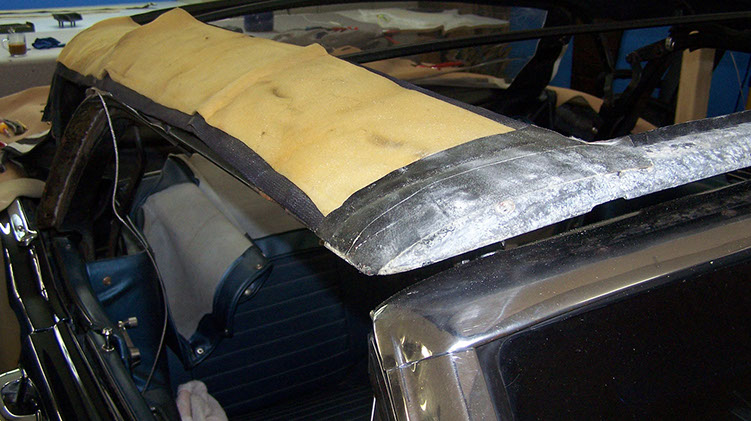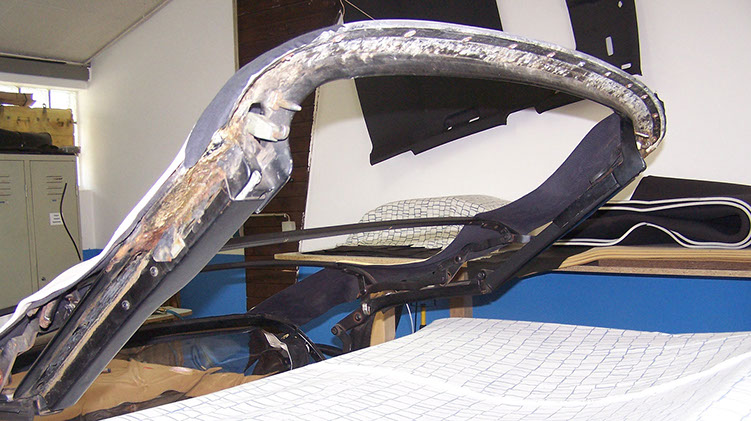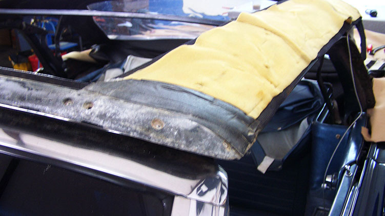 beschädigtes Verdeck vor der Restaurierung